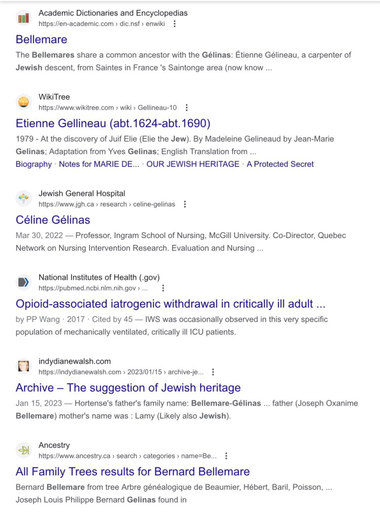 My Gélinas (Bellemare) Ancestral history
