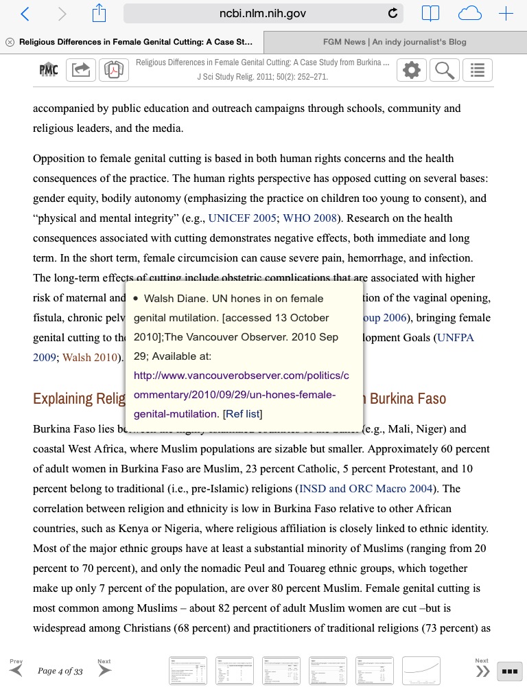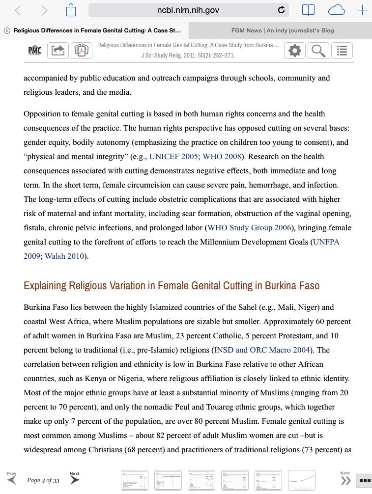 is now used a source. Referenced in a NIH study on FGM here: