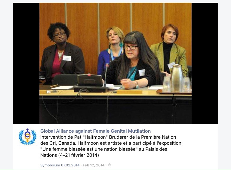 Global Alliance Against FGM fund-raiser (c) 2014 GAAFGM GA-FGM Press Release – Halfmoon Woman Canada_Dec 2013 – Indigenous Canadian Woman & Birch Bark Biting Master presents, in Geneva, Dec 12th and 13th, UN Campus in support of GAFGM.