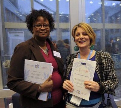 “J’y suis en tant que fondatrice de l’Alliance globale contre les MGF A mes côtés, Madame Compaoré, Première dame du Burkina Faso (centre) et Ambassadrice du Comité Inter-africain sur les pratiques traditionnelles néfastes à la santé de la Femme, Madame Lamizana, Présidente du CI-AF et la Ministre de la promotion de la femme du Burkina Faso, Madame Nestorine Sangaré (gauche)” – Elisabeth Wilson, GAGFM (pic above, second from left side). Pic below, Hon. Emma Bonimo, Italian Senate and members of NPWJ